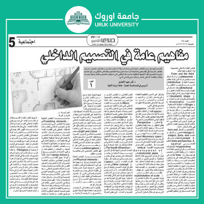 تم نشر مقالة من جزئين تحت عنوان مفاهيم عامة في التصميم الداخلي للتدريسي في جامعة أوروك / كلية الهندسة / قسم الهندسة المعمارية