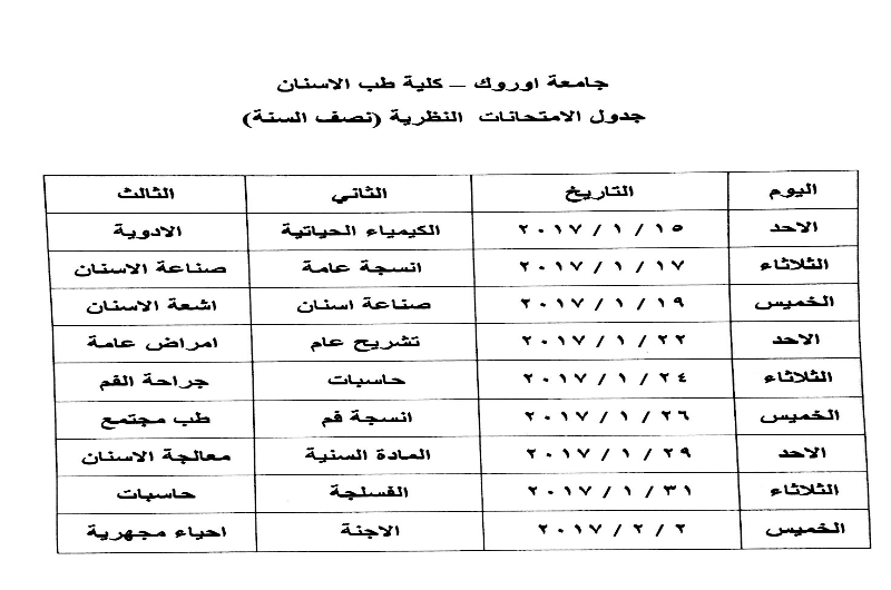 بدء امتحانات نصف السنة لكلية طب الاسنان